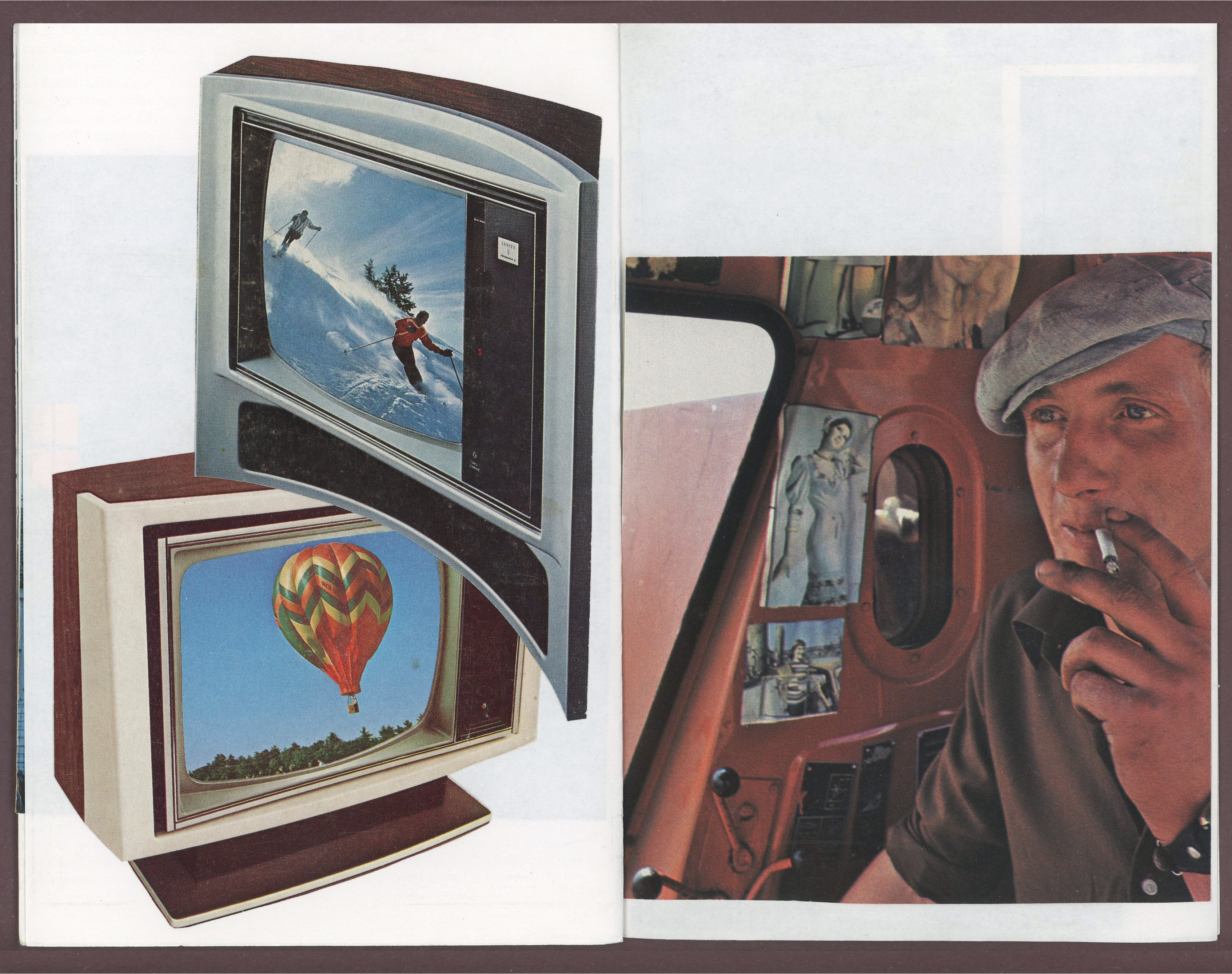 scanned unbound original of the zine ślepy, made sometime around 2018 maybe. images from national geographic. xeroxed on kelly opaque text in color and saddle stitched 5.5”x8.5”