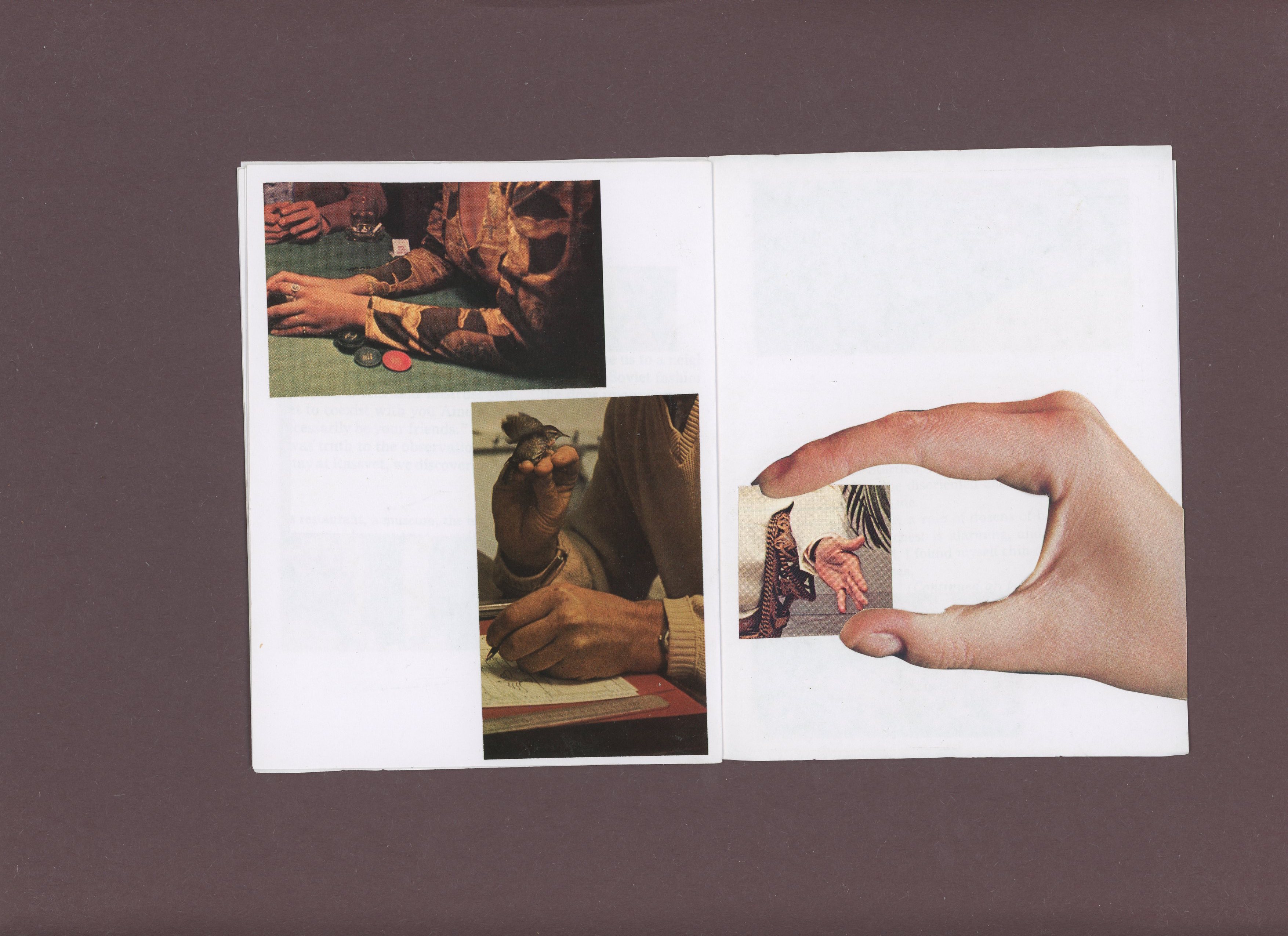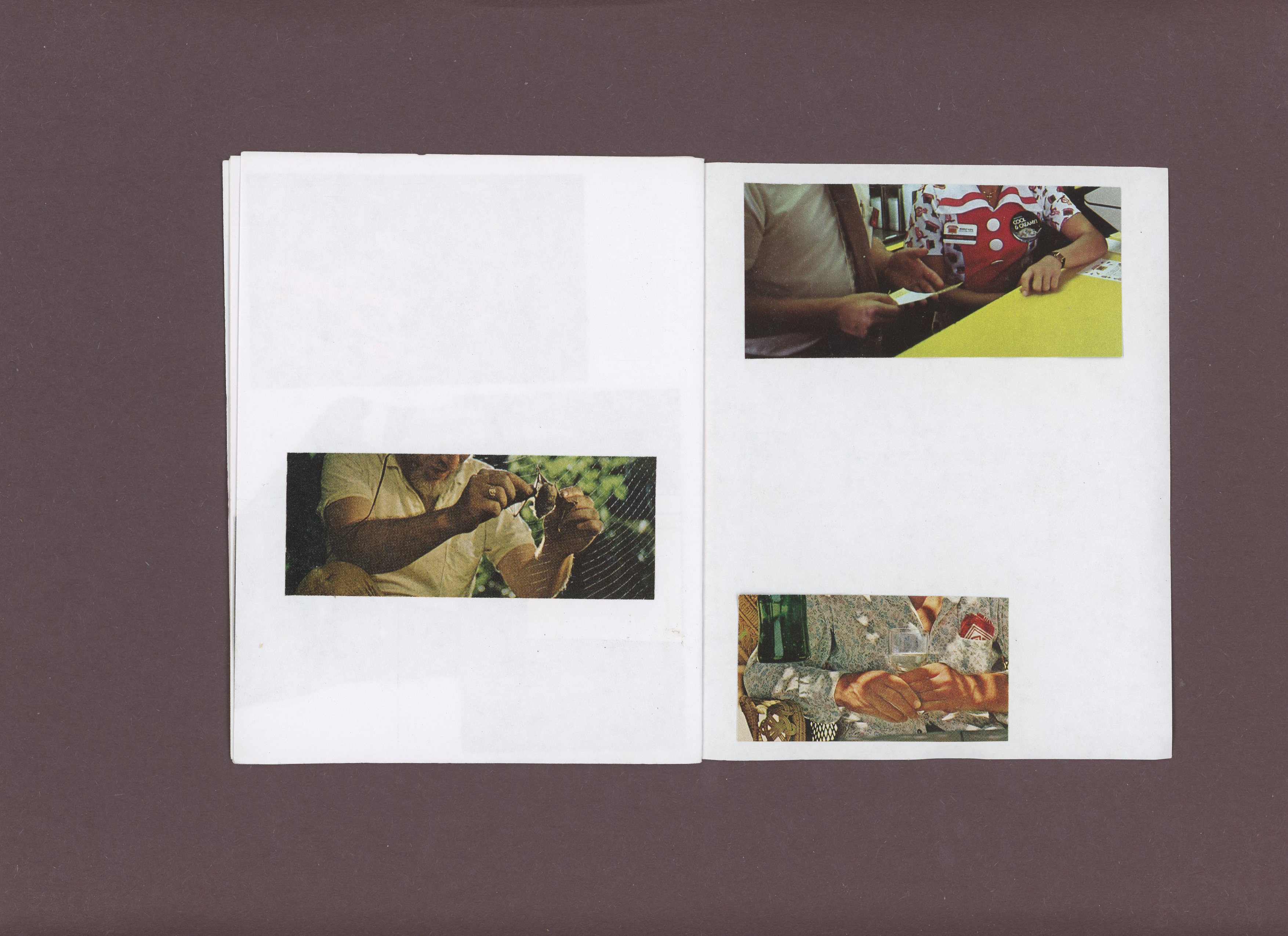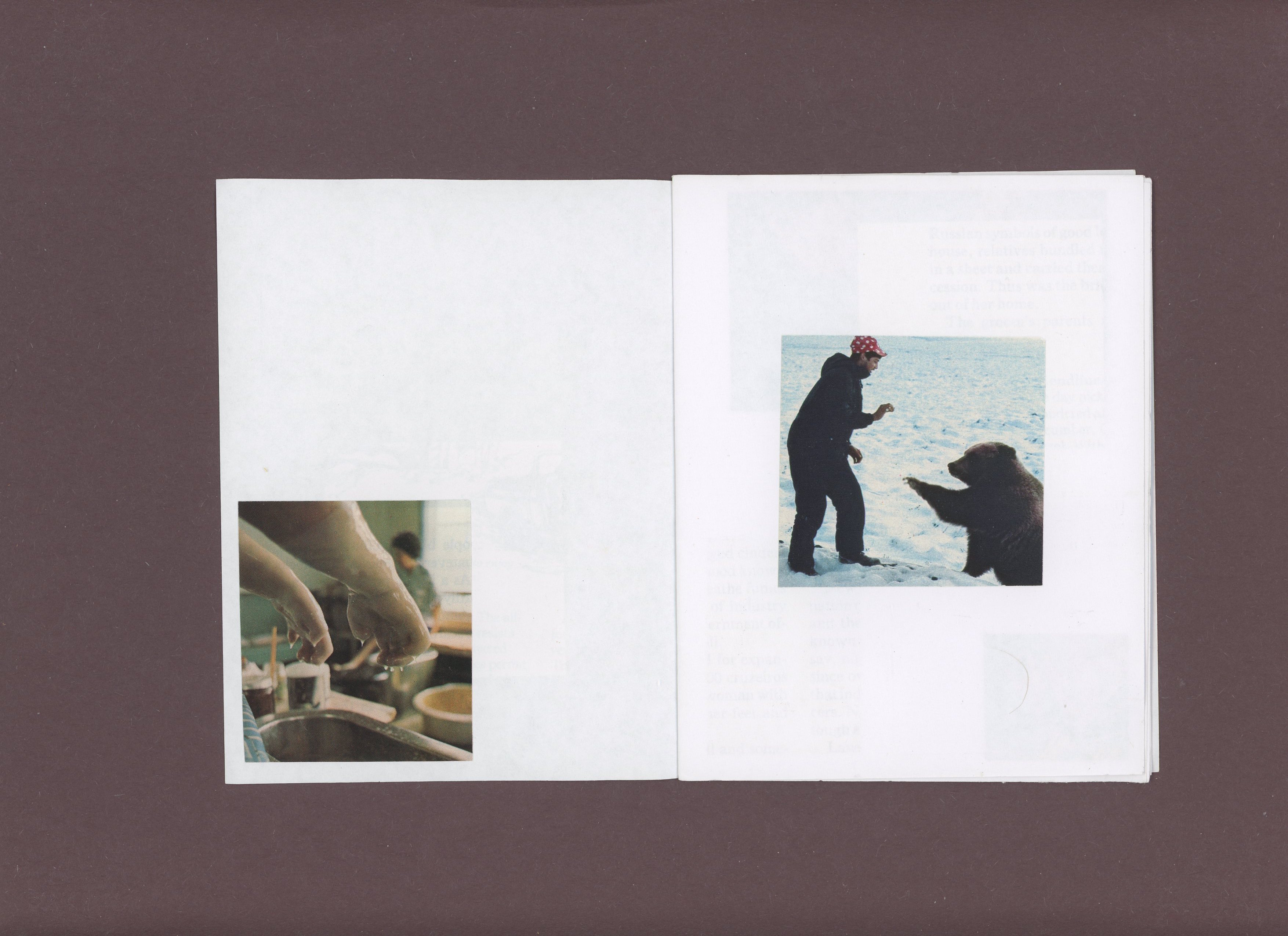 scanned unbound original of the zine touch, made sometime around 2018 maybe. images from national geographic. printed on kelly opaque text in color and saddle stitched 4.25”x5.5”